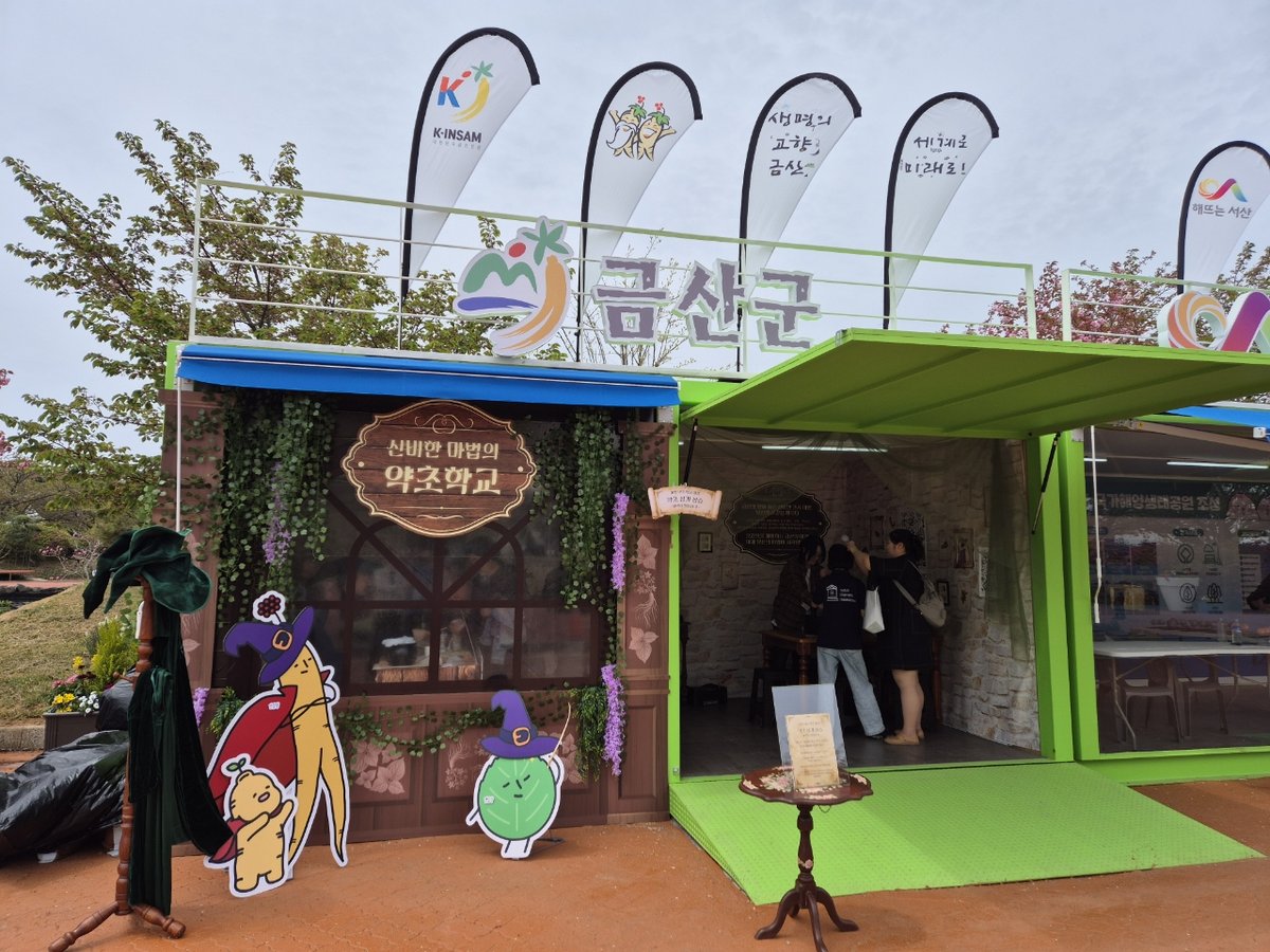 금산군 홍보부스는 ‘신비한 마법의 약초학교’를 주제로 금산의 대표 특산물인 깻잎과 인삼을 비롯한 다양한 약초의 효능과 가치를 흥미롭게 전달하는 데 중점을 뒀다.