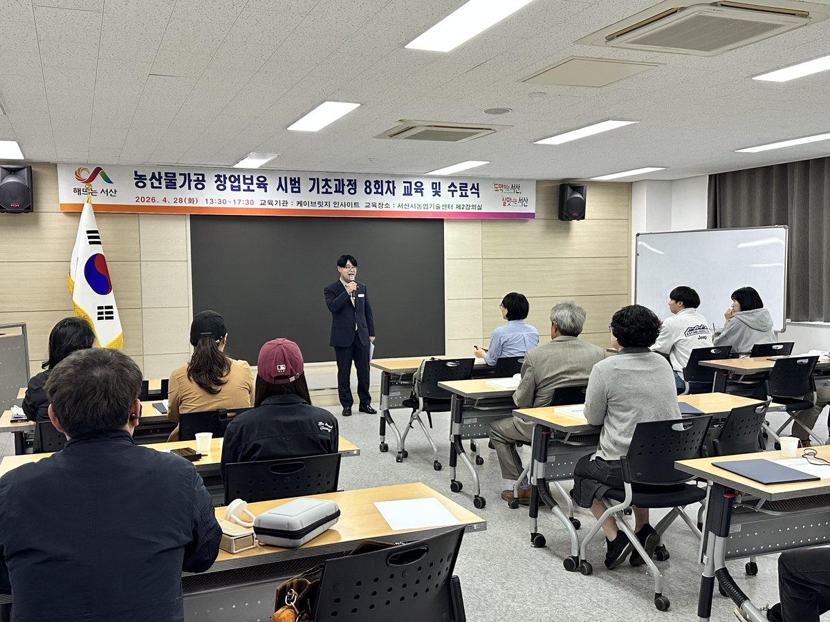[충청뉴스큐] 서산시농업기술센터는 4월 28일 농산물가공 창업보육 기초과정 수료식을 개최하고 총 17명의 교육생에게 수료증을 수여했다.