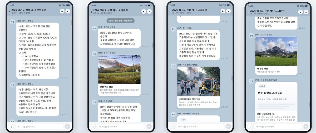 [충청뉴스큐] 경기도는29일 모바일 메신저를 활용한 산불 대응 모의훈련을 실시했다.모바일 기반의 재난 대응 훈련은 이번이 처음으로장소에 구애받지 않고 신속하게 상황을 전파하고 즉각적으로 대응하는 실전 역량을 강화하기 위해 마련됐다.