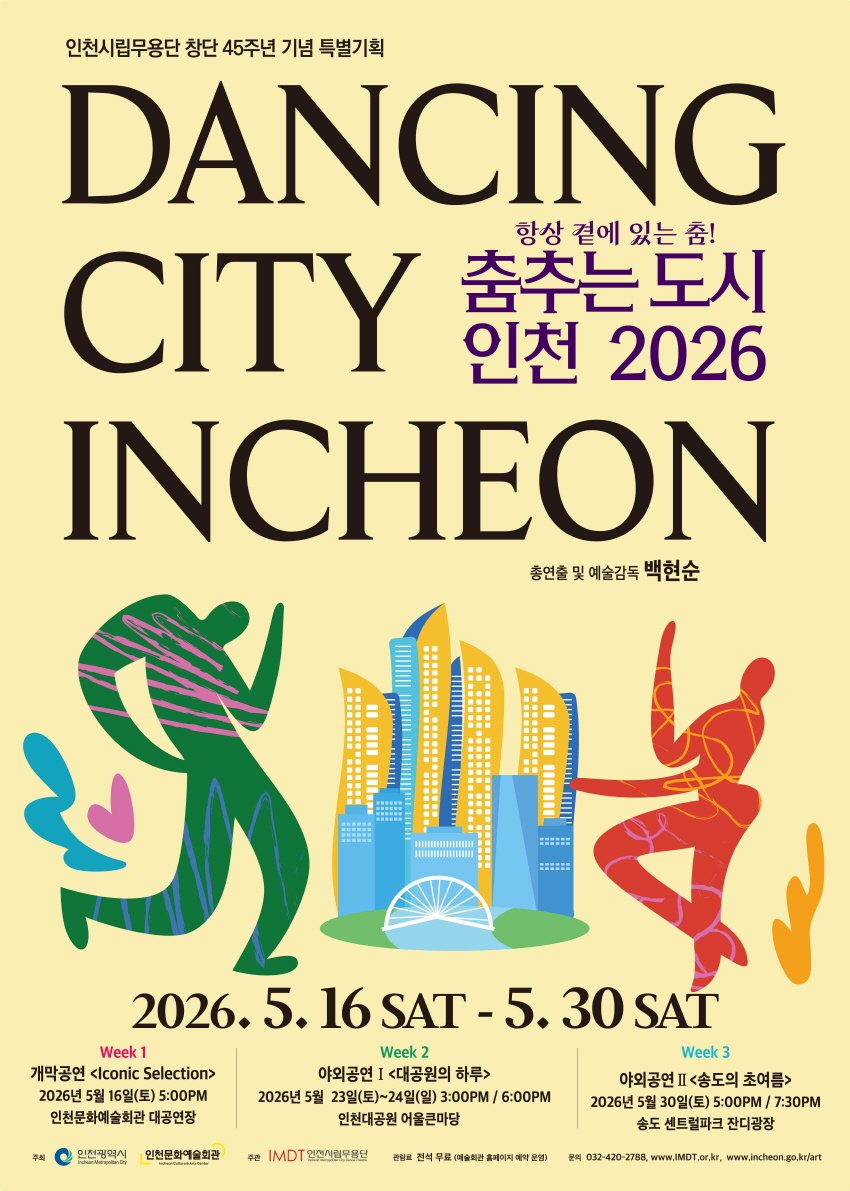 [충청뉴스큐] 인천의 봄을 춤으로 물들이는 인천시립무용단의 대표 축제 춤추는 도시 인천 2026이 5월 16일부터 30일까지 3주간 진행된다.