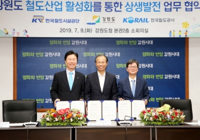 [충청뉴스큐] 강원도와 한국철도공사, 한국철도시설공단은 9일 오전 11시 강원도청 본관 소회의실에서 강원도 철도산업 활성화를 통한 상생발전 업무협약을 체결했다.