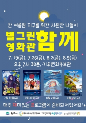 [충청뉴스큐] 지구 온난화와 기후변화에 대한 인식을 높이고 여름철 가정의 전기 사용량을 줄이기 위한 제6회 별그린 영화관 ‘함께’가 오는 19일부터 8월 9일까지 매주 금요일 저녁 7시 30분 기후변화홍보관에서 열린다.