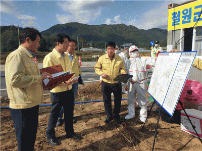 [충청뉴스큐] 김성호 강원도 행정부지사는 15일, 철원군 원남면 민통선 내 야생멧돼지 폐사체 ASF 바이러스 3건검출에 따라 민통선지역 전체가 오염됐다고 판단하고 감염된 야생 멧돼지 남하로 인한 우리도 농장 내 유입이 우려되는 엄중한 상황을 인지하고 긴급히 철원군 긴급방역대책 추진상황과 차단방역 현장 긴급점검했다.