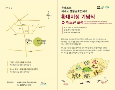 [충청뉴스큐] 제주특별자치도 세계유산본부가 생물권보전지역 확대지정을 기념하기 위한 행사를 오는 30일부터 11월 1일까지 3일간 진행한다고 밝혔다.