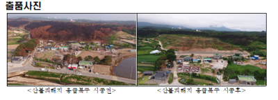 고성군에서 출품한 “산불피해지 응급복구 사업”은 2019년 봄철 대형산불로 인해 산림과 연접된 약 20채의 농가가 전소 피해를 입은 토성면 인흥리 마을로 군에서는 산불피해지의 산사태 등 2차 피해예방을 위해 피해목 벌채 및 사방복구를 우기전 완료해 태풍 및 집중호우시 주민들의 불안감 해소에도 기여한 바 있다.