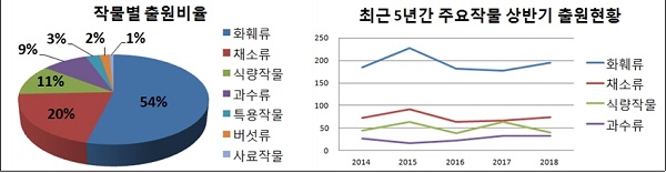 [충청뉴스큐]국립종자원은 2018년 상반기 신품종 출원 건수가 362건으로 화훼, 채소, 식량작물 순으로 많이 출원되었으며, 전년 동기 358건 대비 소폭 증가하여 신품종 개발이 활발하게 이뤄지고 있다고 밝혔다.