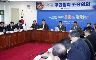 원희룡 지사는 이날 오전 도청 본관 2층 삼다홀에서 주간정책조정회의를 주재하며 지역경제 활성화를 위한 재정집행 추진상황을 총괄 점검하고 90% 이상 달성을 위한 대책들을 논의했다.